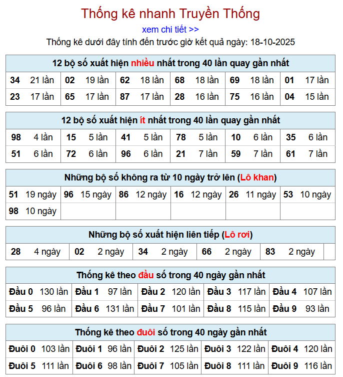Thống kê lô tô trực tiếp và đầu đuôi lô tô của XSMB