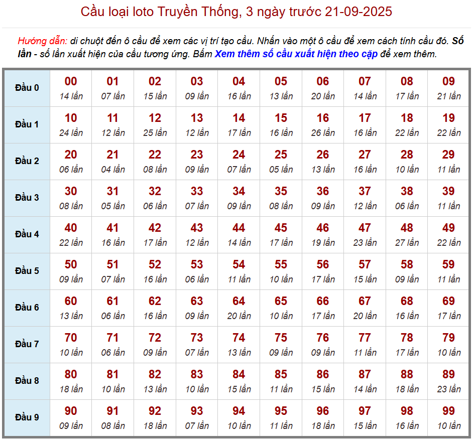 Thống kê bộ số đặc biệt tuần và cầu lô tô Truyền thống của Xổ Số Miền Bắc