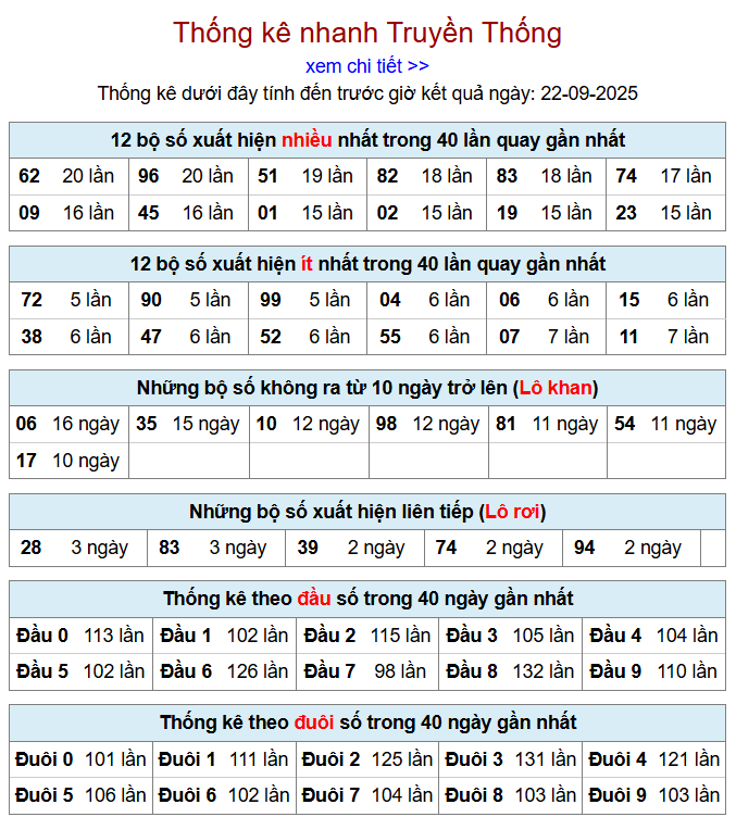 Thống kê lô tô trực tiếp và đầu đuôi lô tô của XSMB