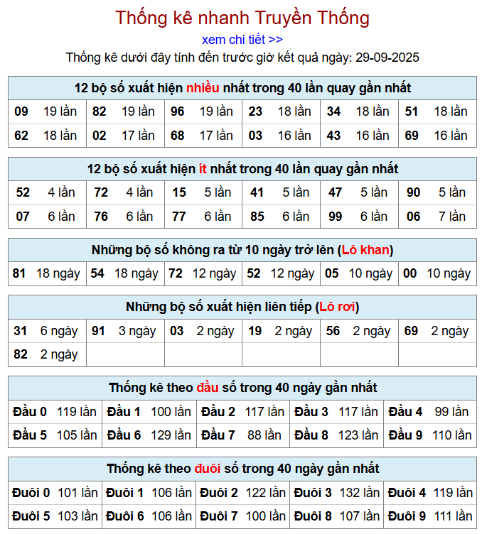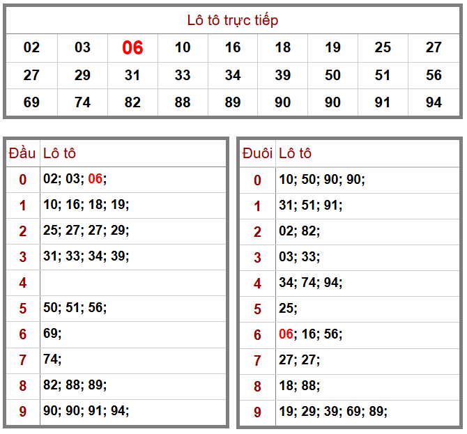 Thống kê lô tô trực tiếp và đầu đuôi lô tô của XSMB