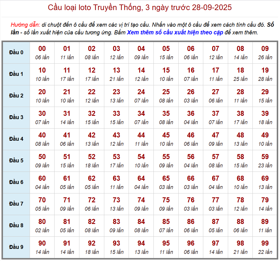 Thống kê bộ số đặc biệt tuần và cầu lô tô Truyền thống của Xổ Số Miền Bắc