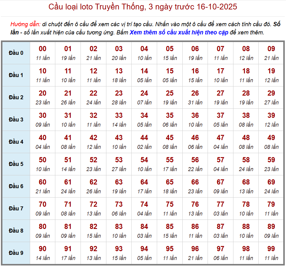 Thống kê bộ số đặc biệt tuần và cầu lô tô Truyền thống của Xổ Số Miền Bắc