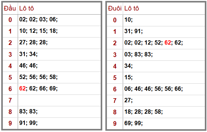 🌟 Đặc biệt: đầu, đuôi: 06 – 60