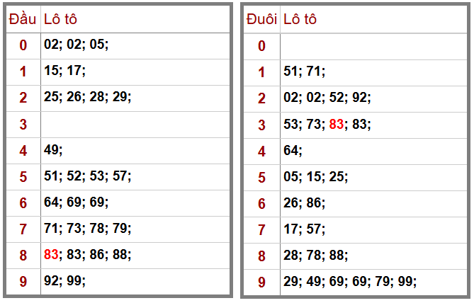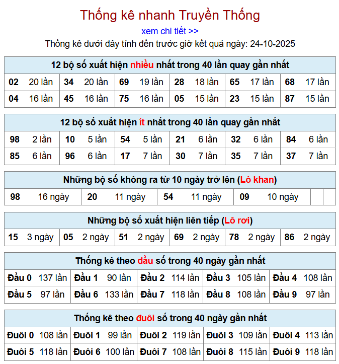 Thống kê lô tô trực tiếp và đầu đuôi lô tô của XSMB