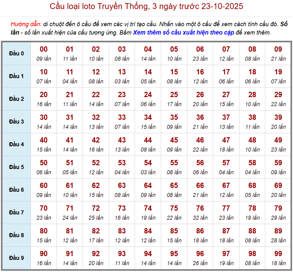 Thống kê bộ số đặc biệt tuần và cầu lô tô Truyền thống của Xổ Số Miền Bắc