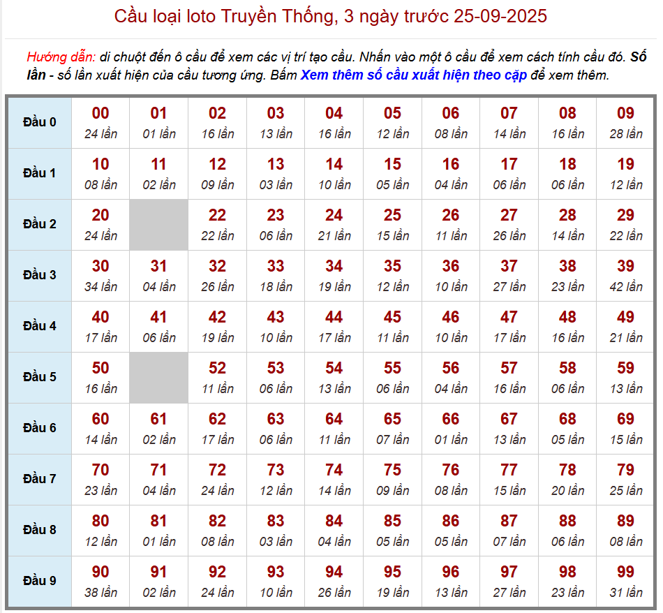 Thống kê bộ số đặc biệt tuần và cầu lô tô Truyền thống của Xổ Số Miền Bắc