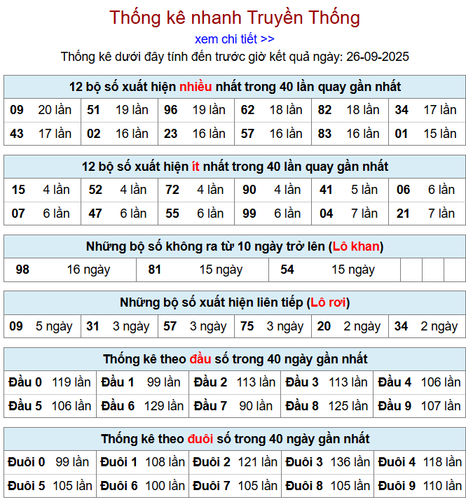 Thống kê lô tô trực tiếp và đầu đuôi lô tô của XSMB