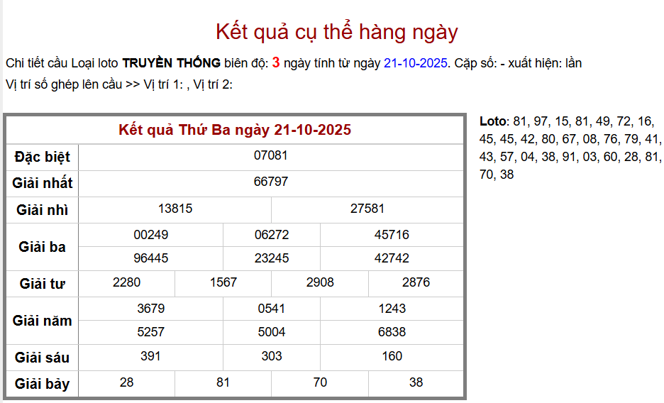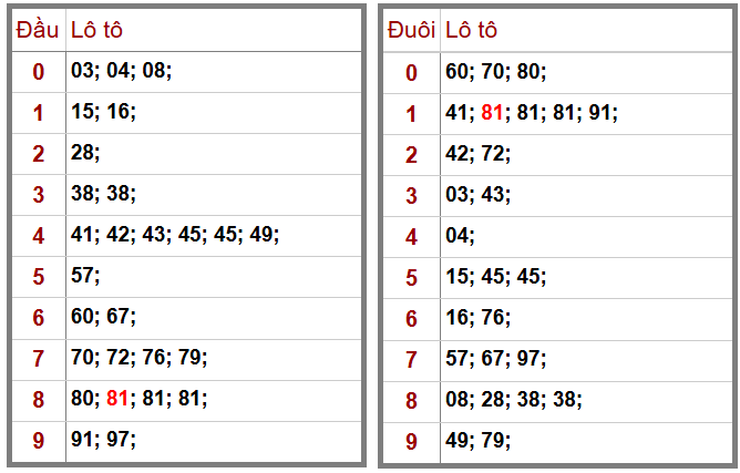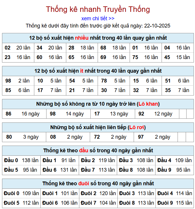Thống kê lô tô trực tiếp và đầu đuôi lô tô của XSMB