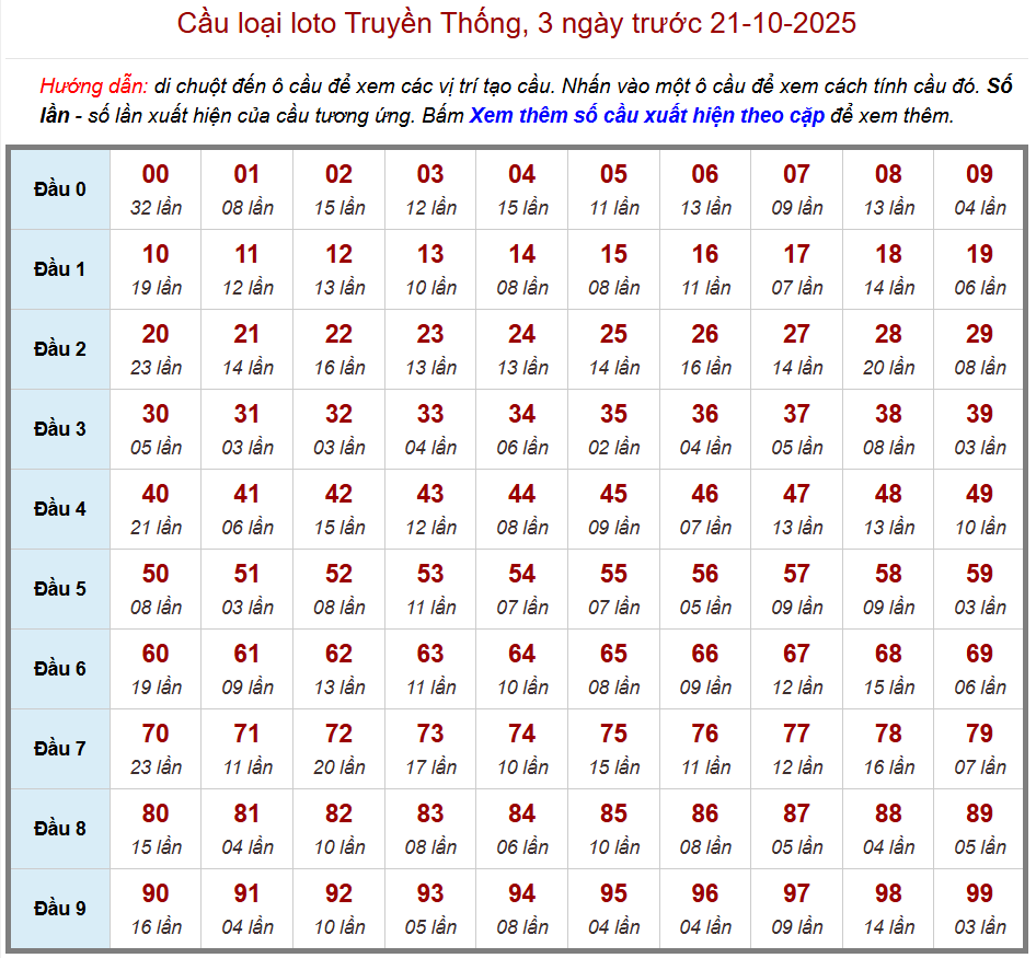 Thống kê bộ số đặc biệt tuần và cầu lô tô Truyền thống của Xổ Số Miền Bắc
